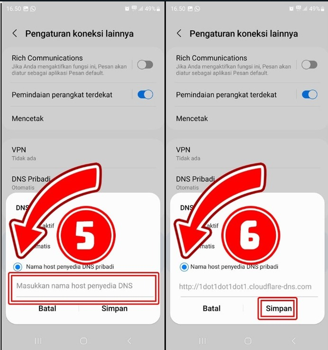 > Pada bagian ini anda bisa isi dengan one.one.one atau 1dot1dot1dot1.cloudflare-dns.com dan disimpan